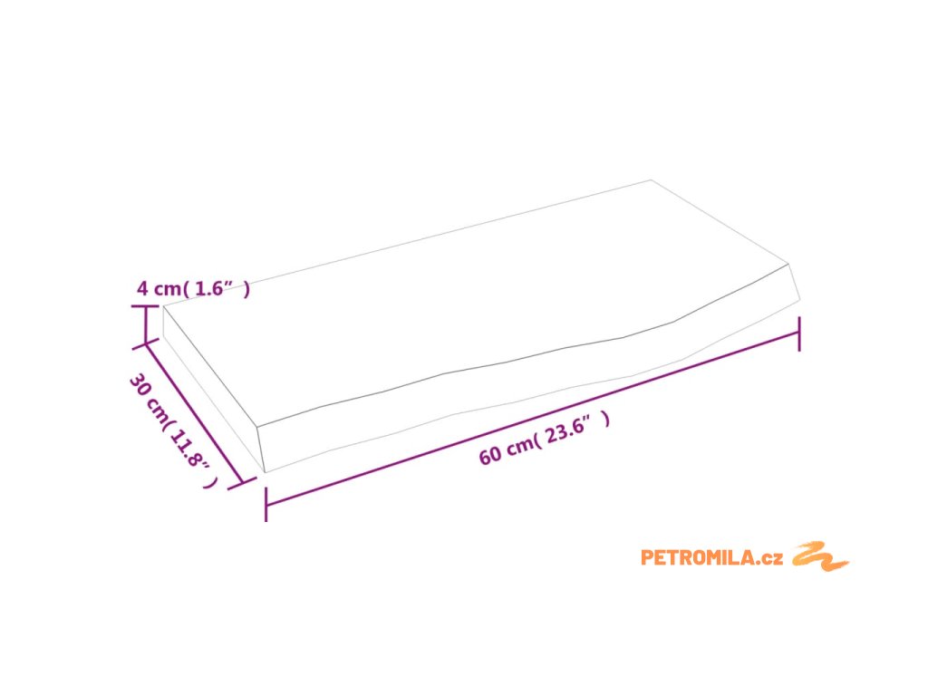 Koupelnová deska 60x30x(2-4) cm neošetřené masivní dřevo