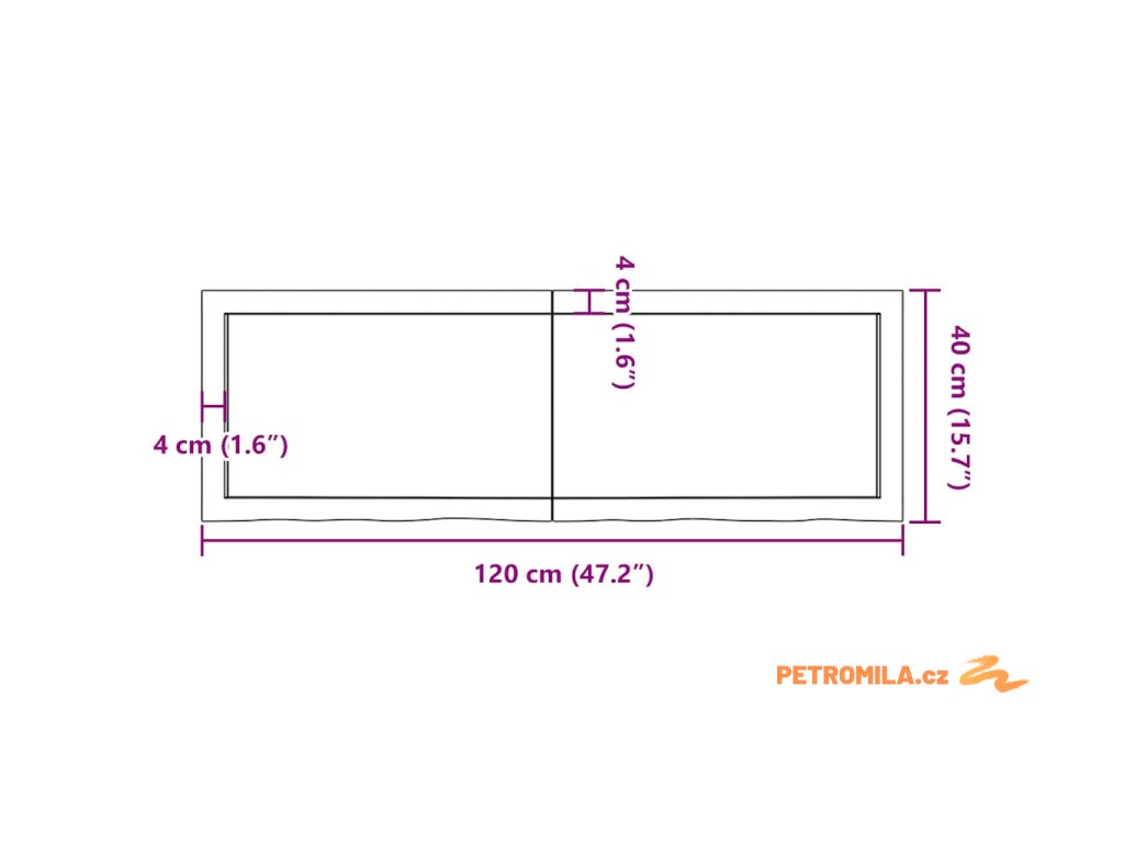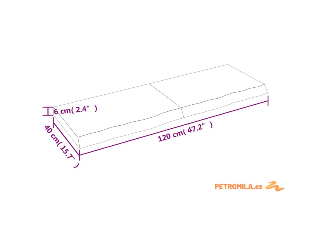 - Celkové rozměry: 120 x 40 x (2–6) cm (D x Š x T)