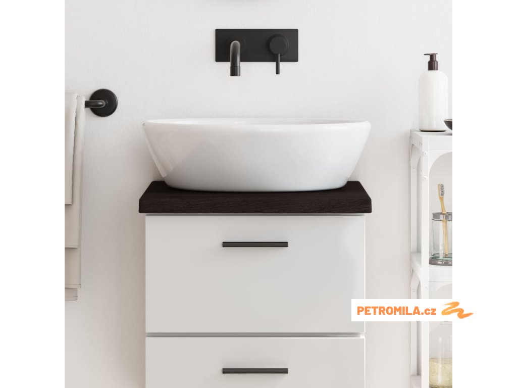 - Ošetřený povrch: Koupelnová deska byla ošetřena tmavou barvou, je tedy připravena k použití a není nutná žádná další povrchová úprava.