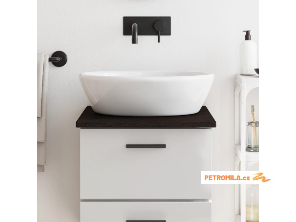 - Ošetřený povrch: Koupelnová deska byla ošetřena tmavou barvou, je tedy připravena k použití a není nutná žádná další povrchová úprava.