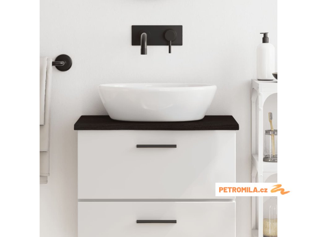 - Ošetřený povrch: Koupelnová deska byla ošetřena tmavou barvou, je tedy připravena k použití a není nutná žádná další povrchová úprava.