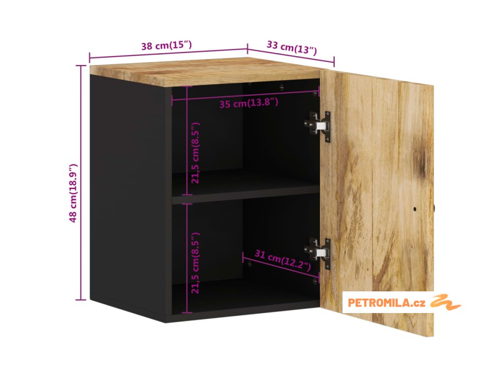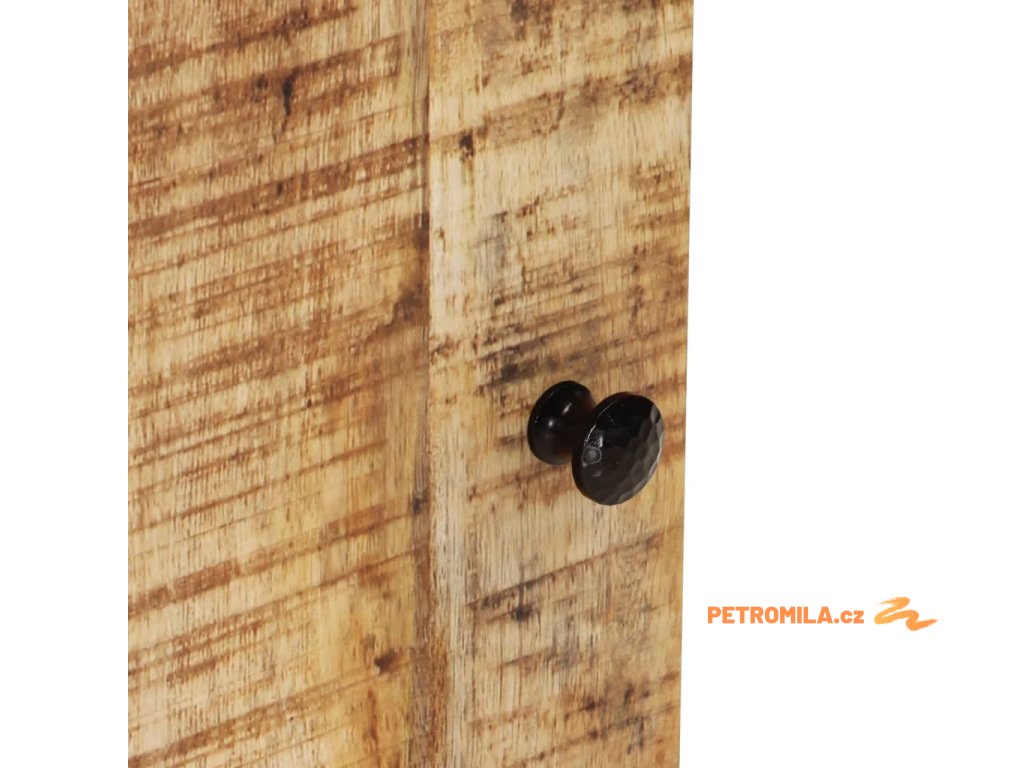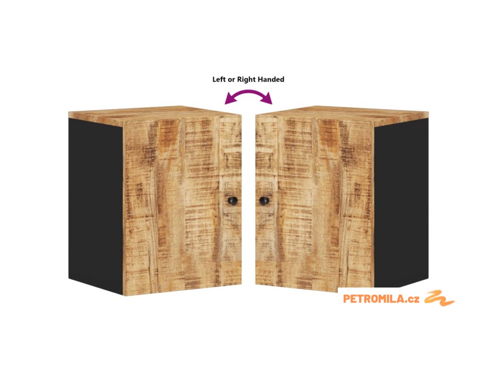 - Masivní mangovníkové dřevo: Tato nástěnná skříňka je vyrobena z masivního mangovníku v kombinaci s kompozitním dřevem. Masivní mangovníkové dřevo je pevné tropické tvrdé dřevo, ze kterého se vyrábí robustní nábytek. Krásná kresba dřeva propůjčuje každému kusu nábytku jeho jedinečný a od všech ostatních lehce odlišný vzhled.