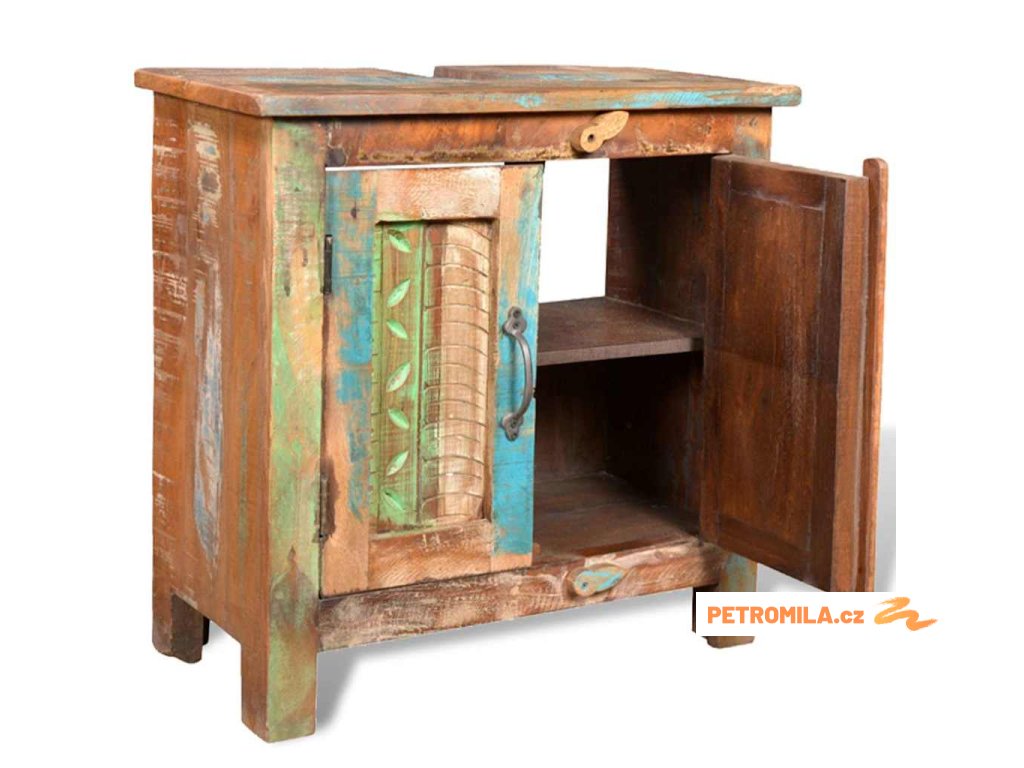 Jak skříňka, tak rám zrcadla jsou vyrobeny z použitého dřeva, což znamená, že každý kus nábytku je jedinečný a trochu jiný. Nábytek vyrobený z použitého dřeva má vlastnosti různého dřeva jako je týkové dřevo, akácie, dřevo z mangovníku, atd. Znovu použité dřevo je masivní, odolné a pevné a co víc, je krásné. Otvory po hřebících a různá struktura dřeva dává historii těmto kusům nábytku a umožňuje nové generaci, aby zde zachytili i svojí historii. Pokud budete mít tuto soupravu nábytku doma, dáte tím najevo svůj souhlas s obnovením zdrojů, s ochranou životního prostředí a s udržitelným rozvojem.