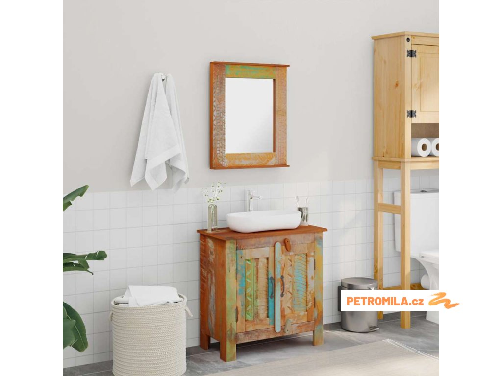 Koupelnová sada z recyklovaného masivního dřeva se zrcadlem