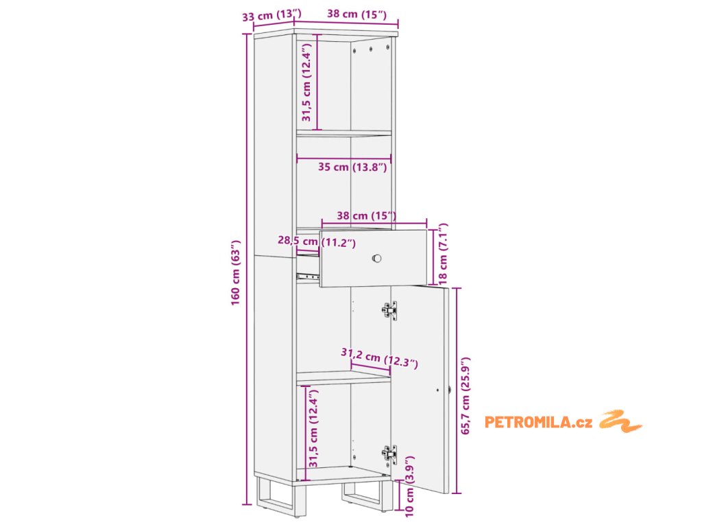 - Celkové rozměry: 38 x 33 x 160 cm (Š x H x V)