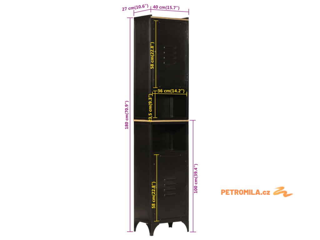 Koupelnová skříňka 40 x 27 x 180 cm železo a masivní mangovník