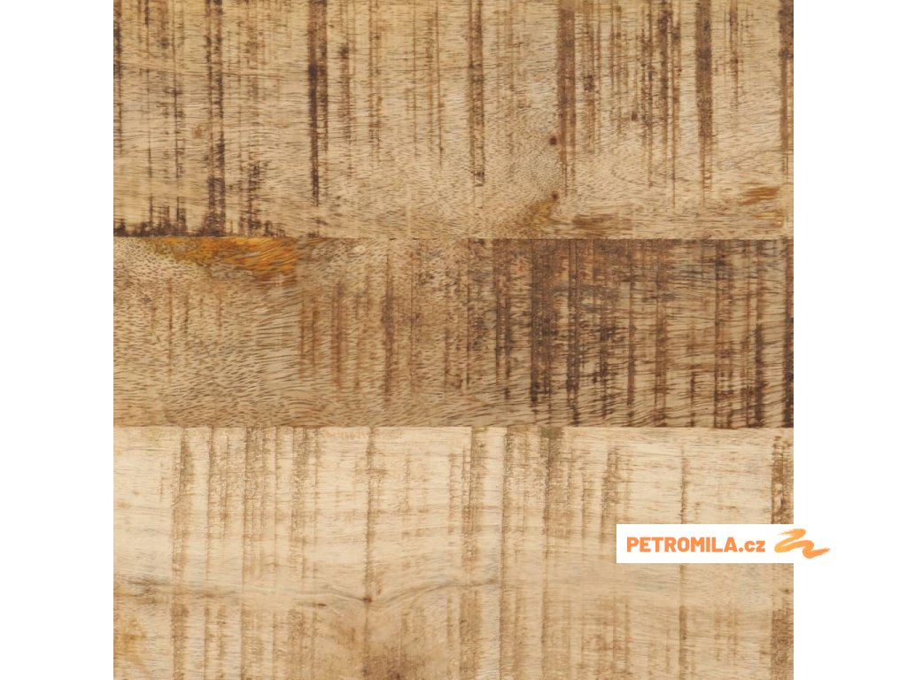 - Masivní mangovníkové dřevo: Masivní mangovníkové dřevo je pevné tropické tvrdé dřevo, ze kterého se vyrábí robustní nábytek. Krásná kresba dřeva propůjčuje každému kusu nábytku jeho jedinečný a od všech ostatních lehce odlišný vzhled.