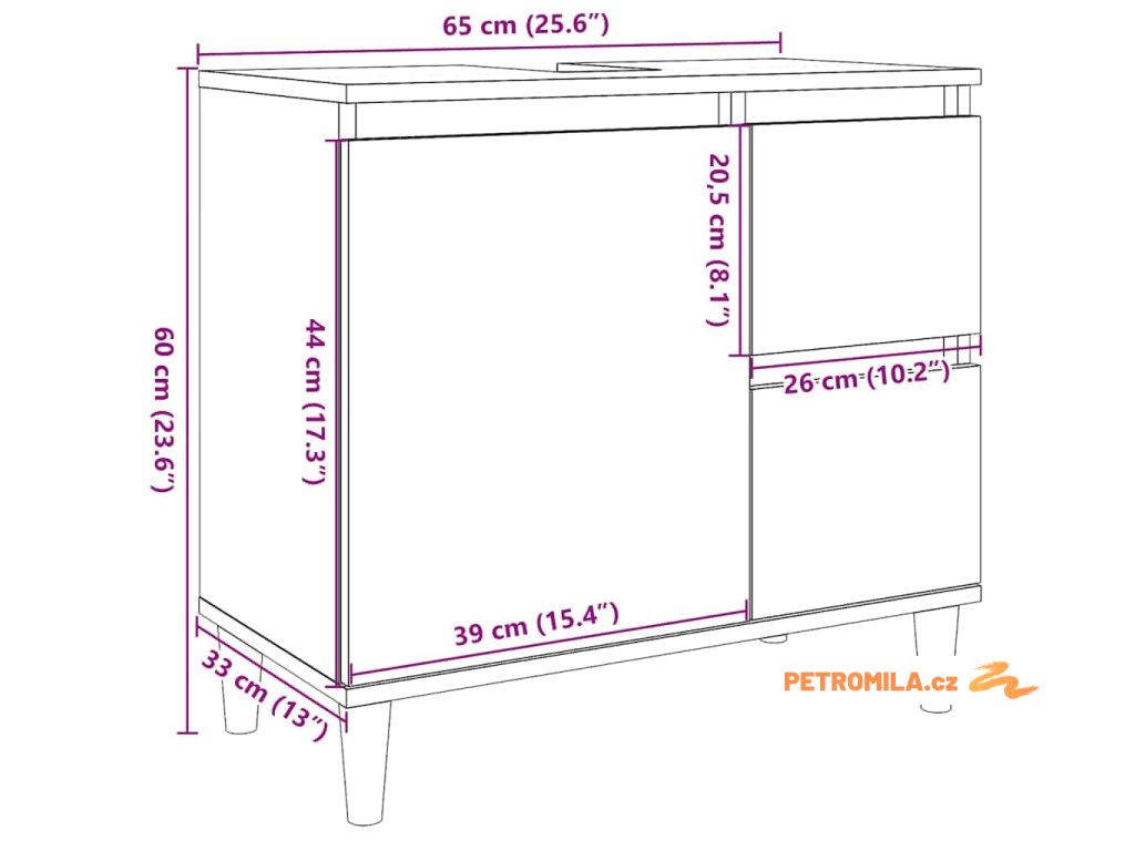 - Dostatek úložného prostoru: Koupelnový nábytek má 2 zásuvky a 1 přihrádku s dvířky, nabízí tedy různé možnosti skladování a další úložný prostor ve vaší koupelně.