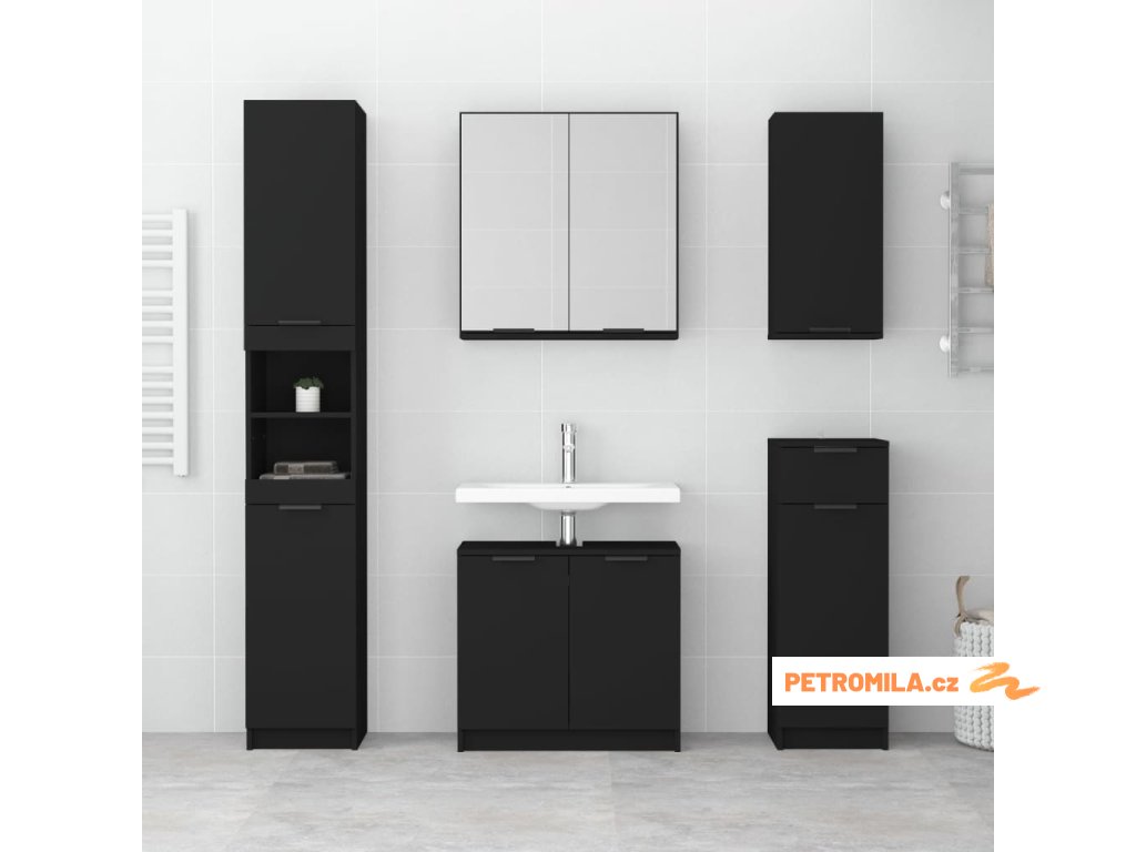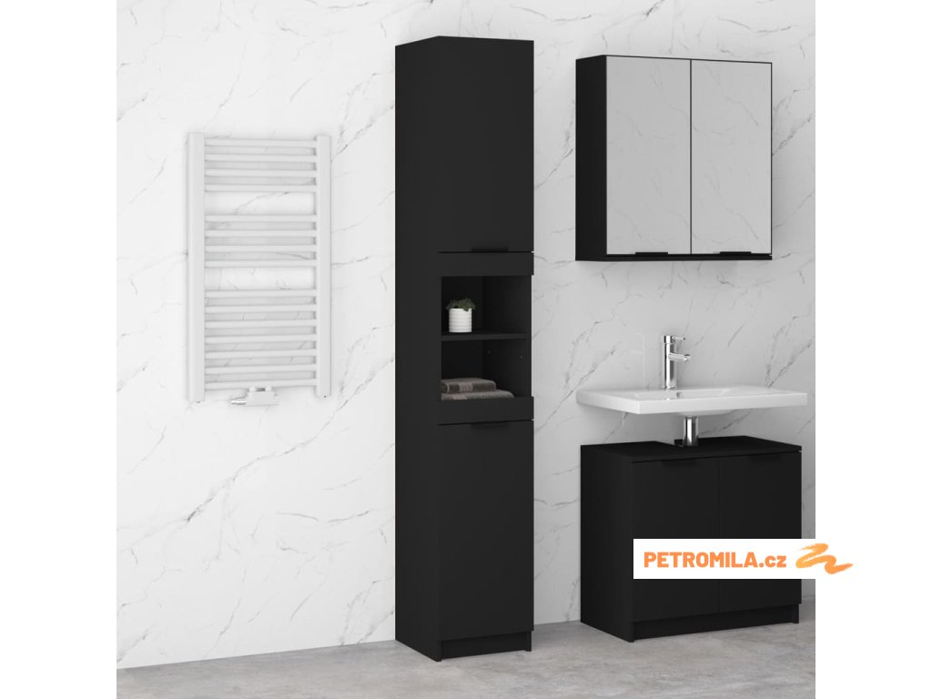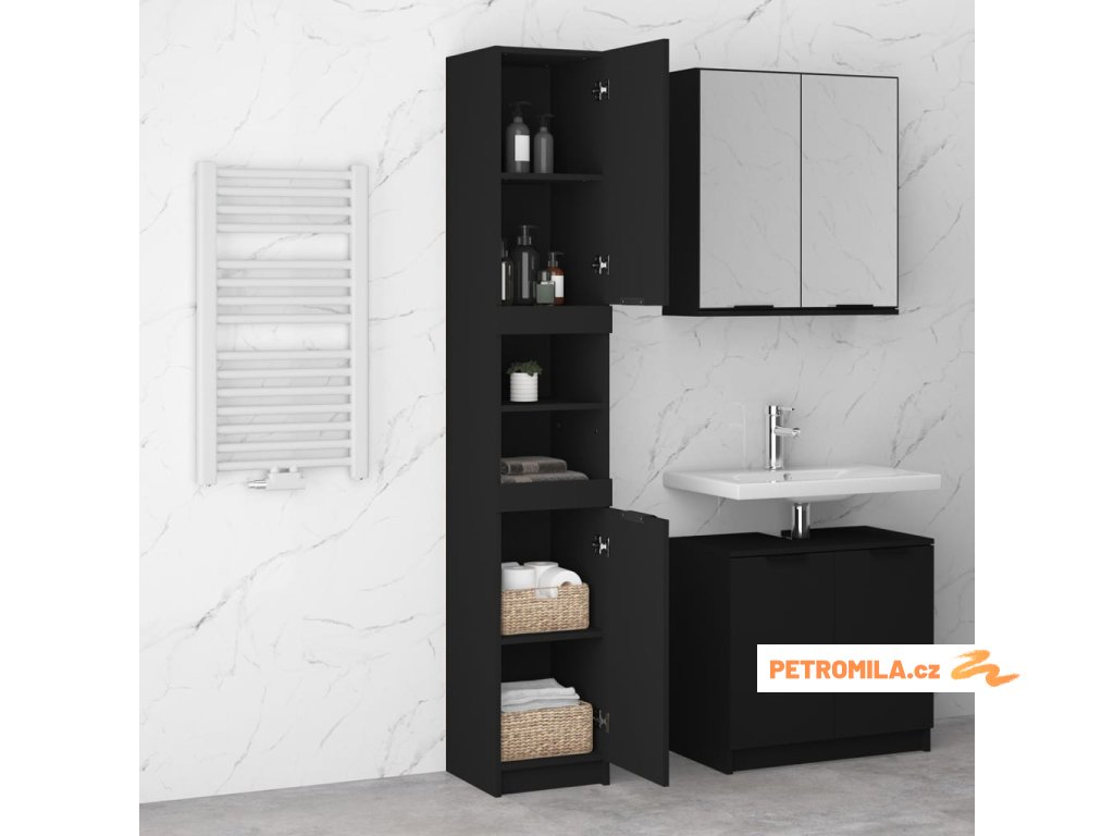 Koupelnová skříňka černá 32 x 34 x 188,5 cm kompozitní dřevo