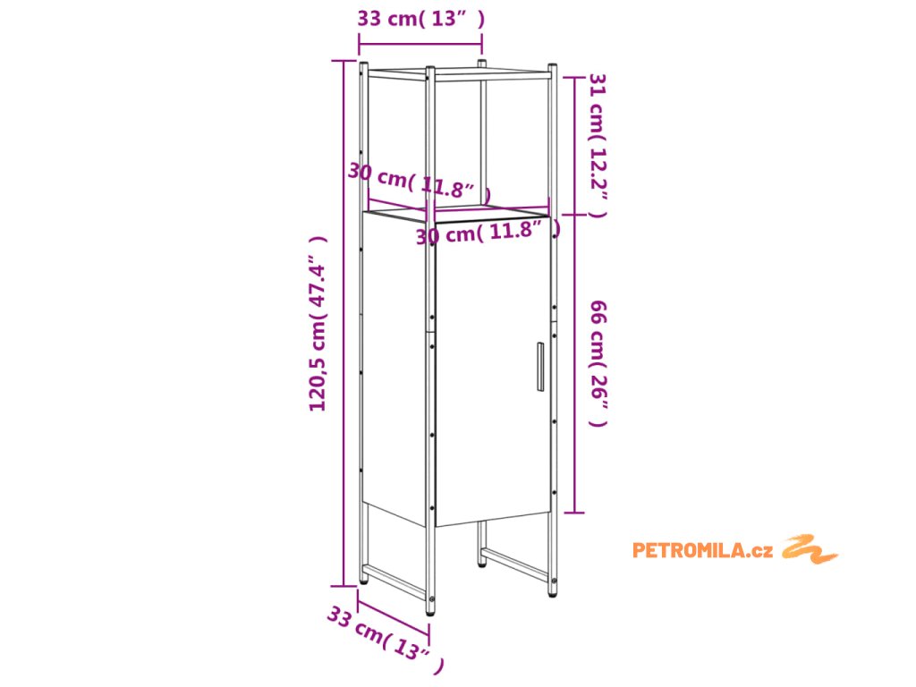 - Rozměry: 33 x 33 x 120,5 cm (D x Š x V)