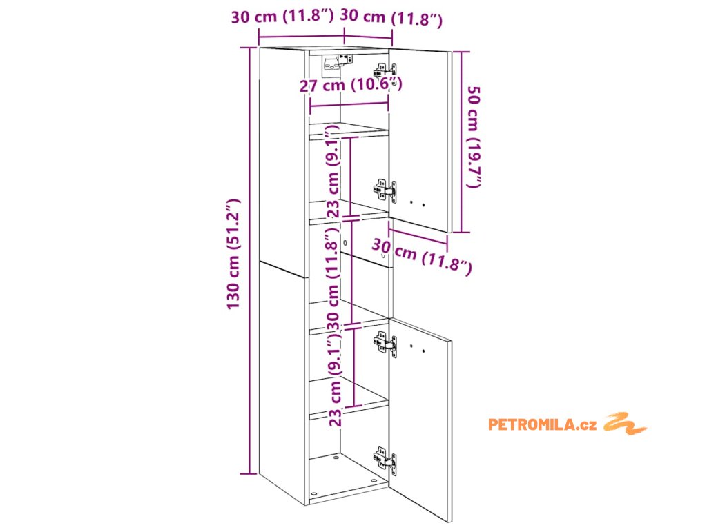 - Celkové rozměry: 30 x 30 x 130 cm (Š x H x V)