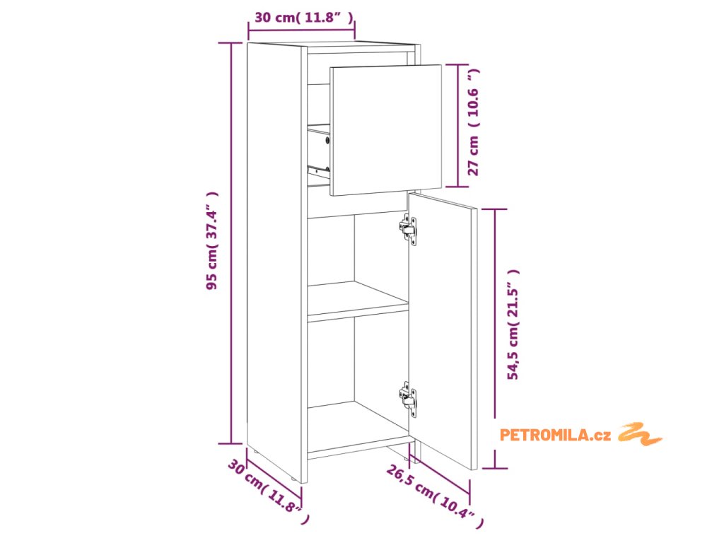 - Celkové rozměry: 30 x 30 x 95 cm (Š x H x V)