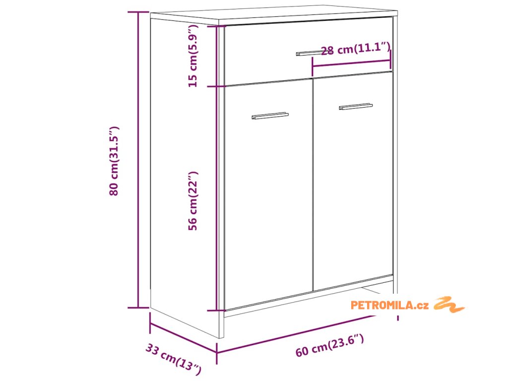 - Rozměry: 60 x 33 x 80 cm (Š x H x V)