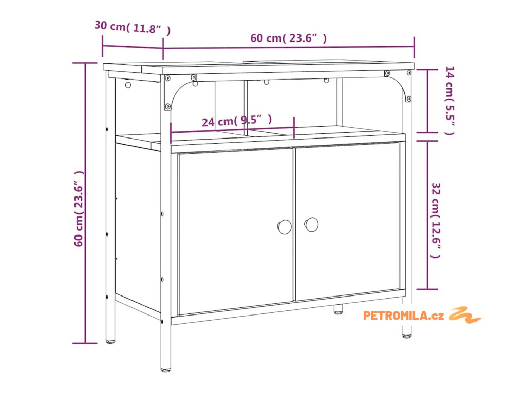 Koupelnová skříňka pod umyvadlo šedá sonoma 60x30x60cm kompozit