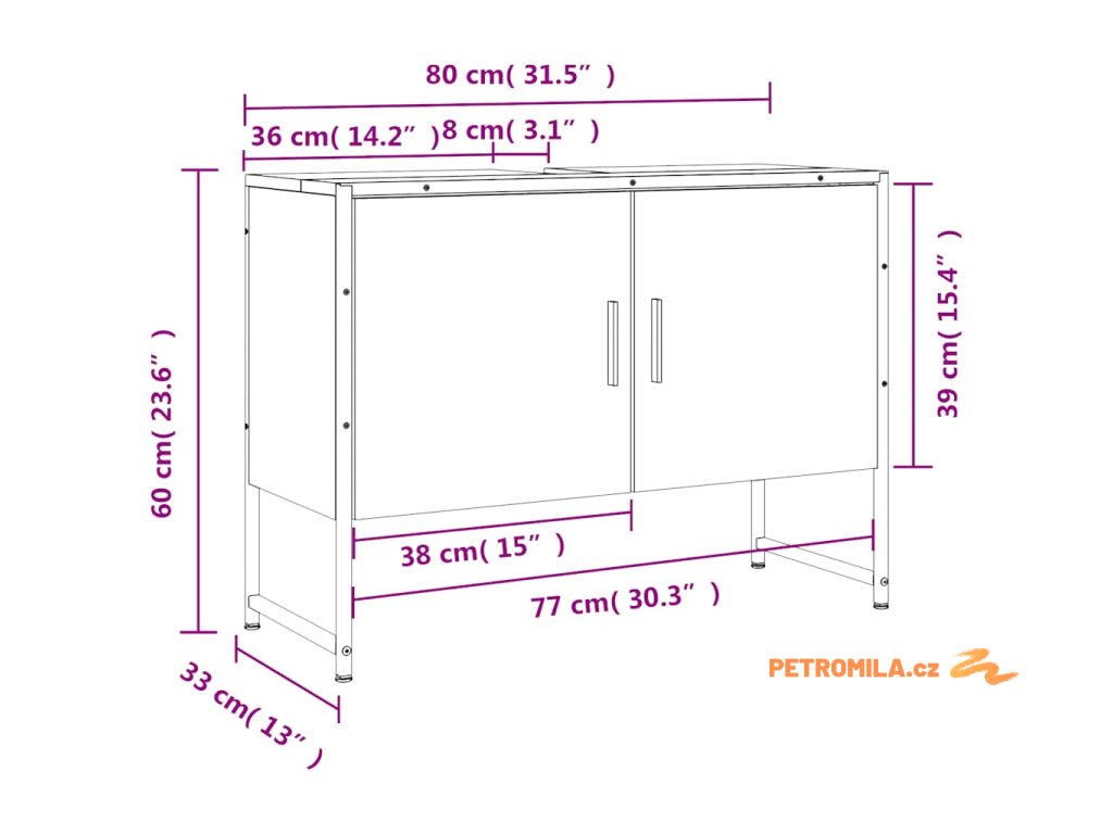 Koupelnová skříňka pod umyvadlo šedá sonoma 80x33x60cm kompozit
