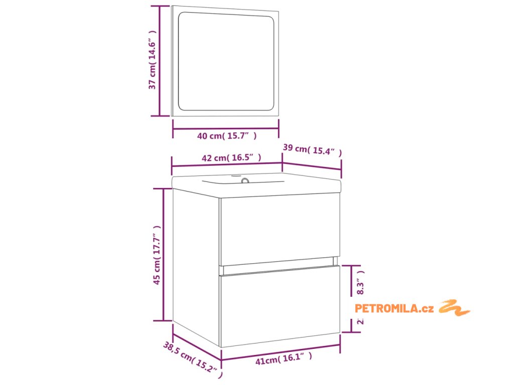 Koupelnová skříňka s umyvadlem a zrcadlem dub sonoma