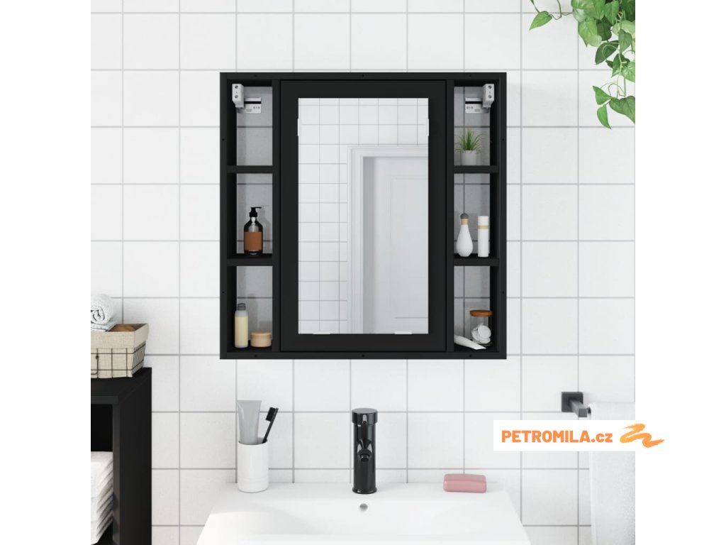 Koupelnová skříňka se zrcadlem černá 60 x 16 x 60 cm kompozit