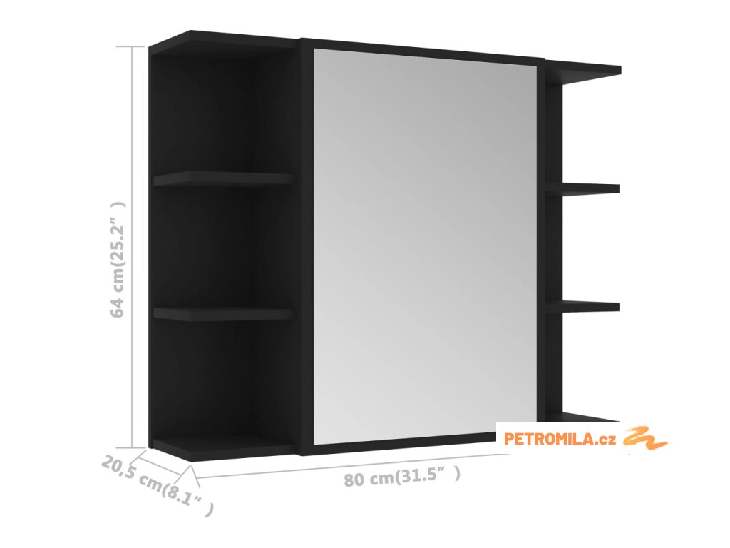 Koupelnová skříňka se zrcadlem černá 80x20,5x64 cm