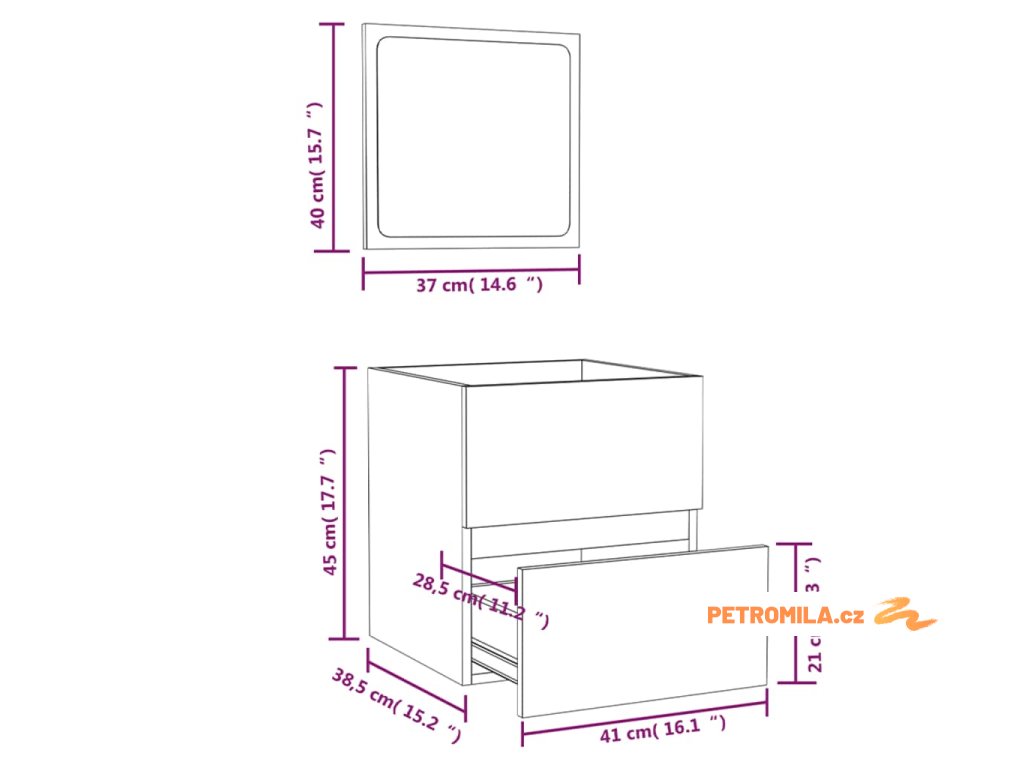 - Rozměry koupelnové skříňky: 41 x 38,5 x 45 cm (Š x H x V)
