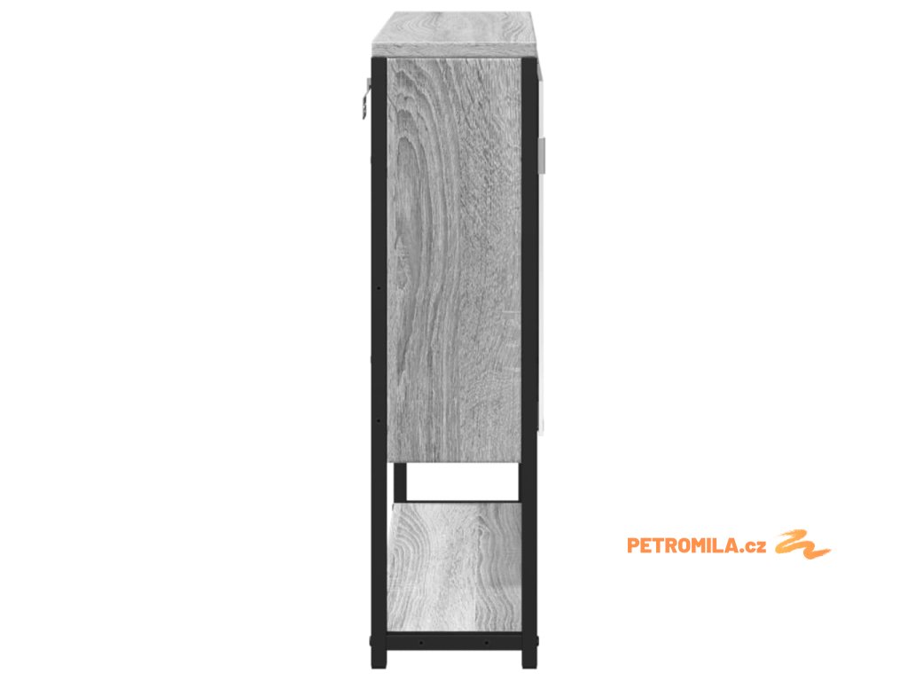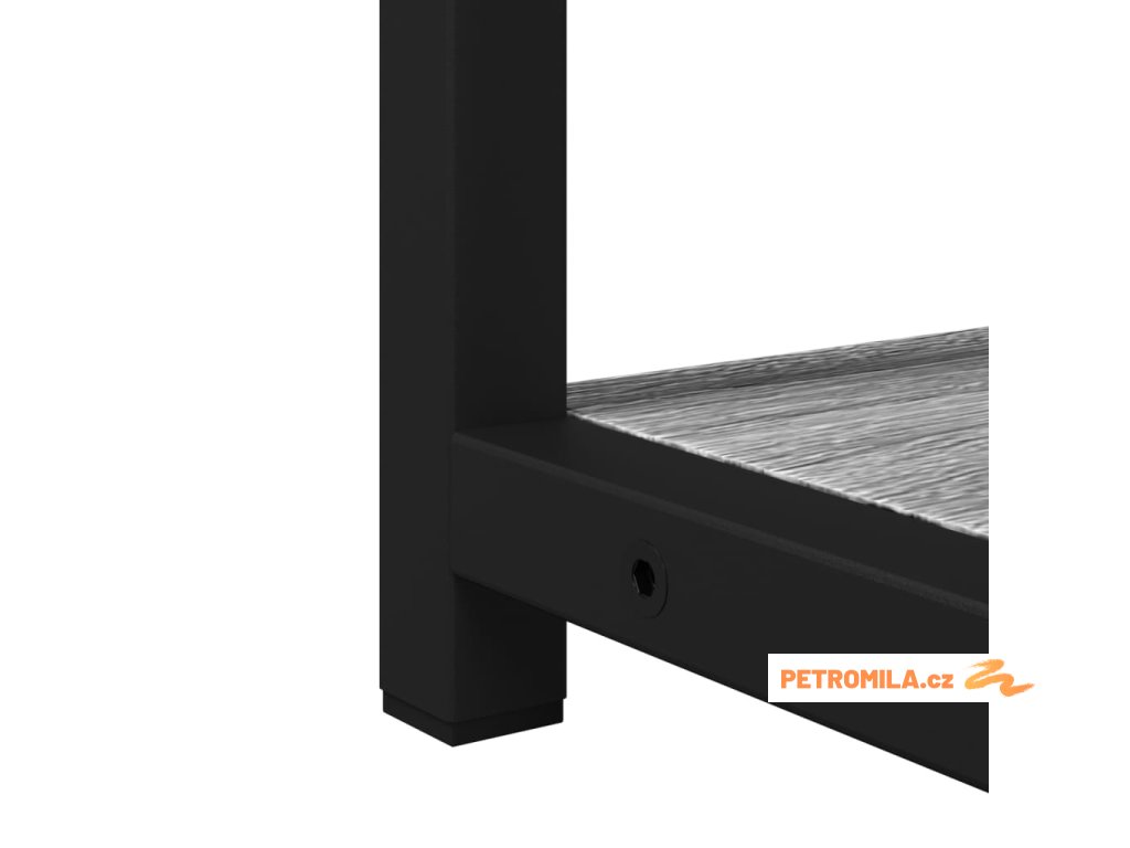 - Materiál: kompozitní dřevo, práškově lakovaná ocel, sklo