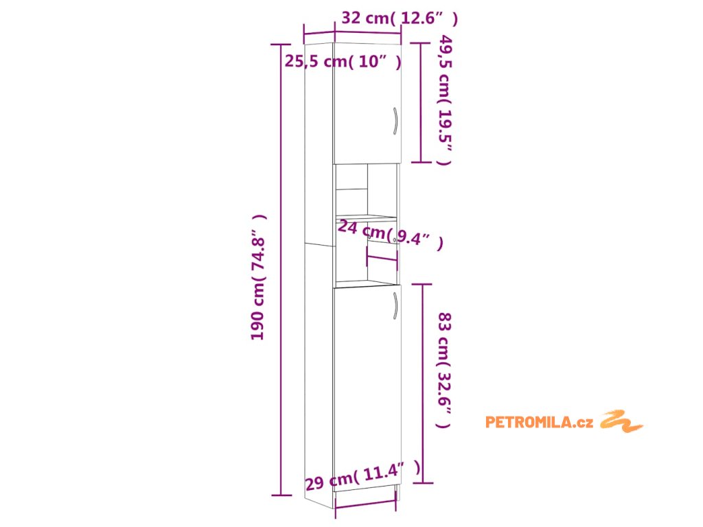 - Rozměry: 32 x 25,5 x 190 cm (Š x H x V)