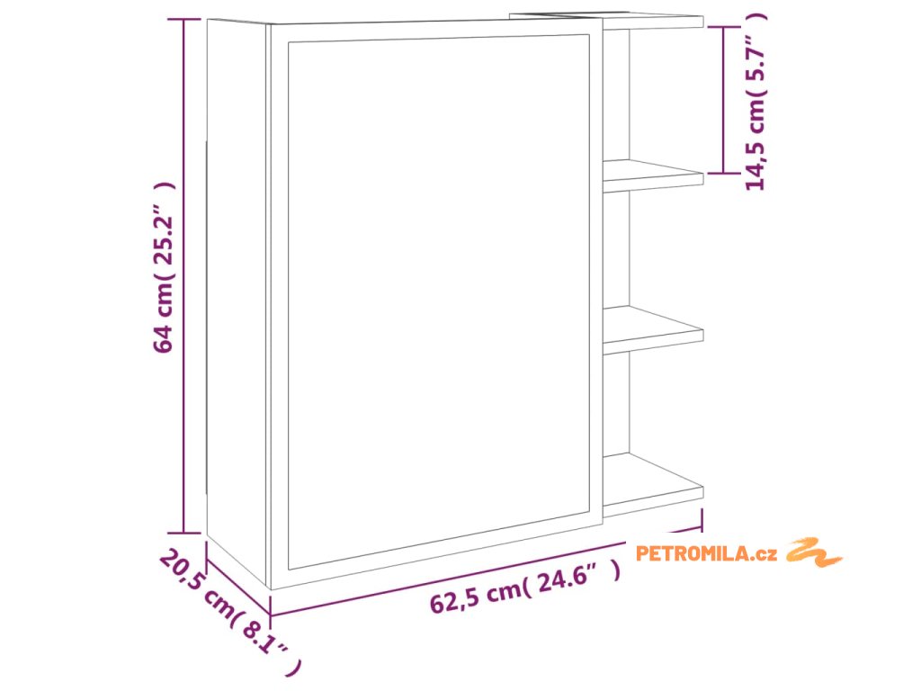Koupelnová zrcadlová skříň šedá sonoma 62,5x20,5x64 cm kompozit