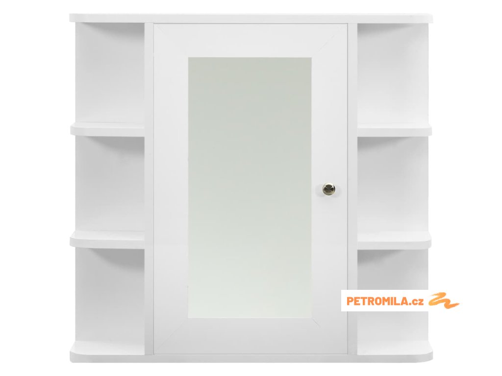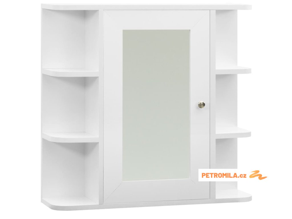 Nástěnná zrcadlová skříňka je vyrobená ze skla a MDF s melaninovou povrchovou úpravou, je odolná a stabilní. Skříňka má 1 dvířka a celkem 8 přihrádek. 6 vnějších přihrádek poskytuje dostatek úložného prostoru, zatímco 2 vnitřní přihrádky nabízejí extra úložný prostor. Snadno si do ní uložíte vaše každodenní toaletní a kosmetické potřeby, jako jsou mýdla, šampony, zubní pasty atd.