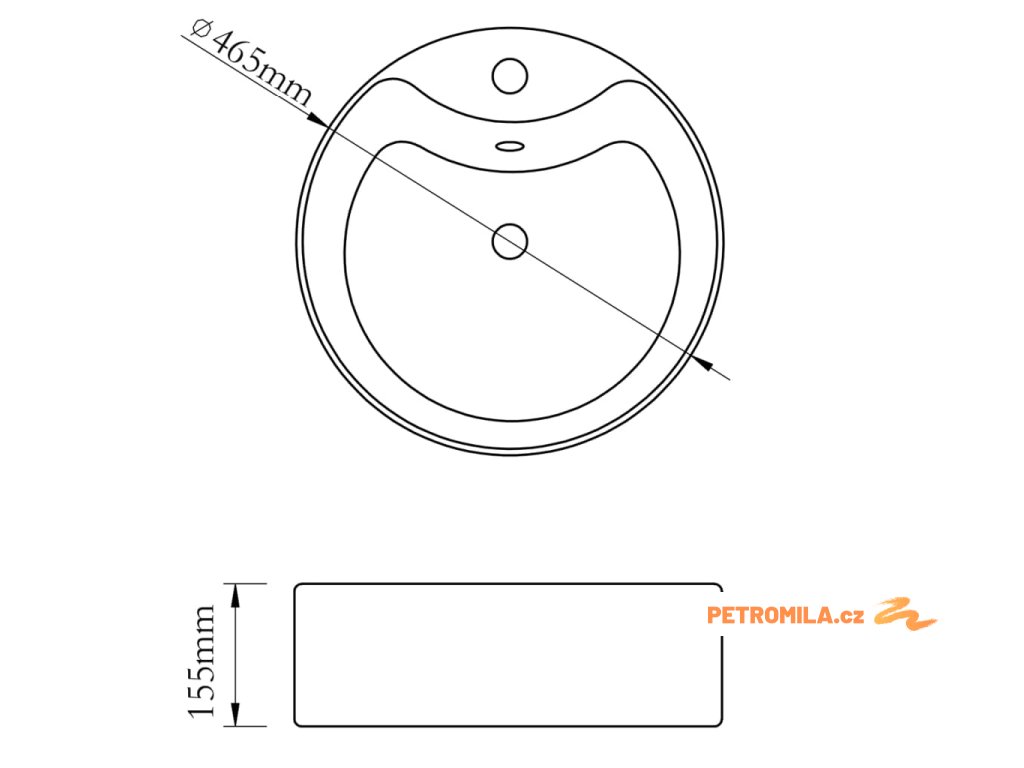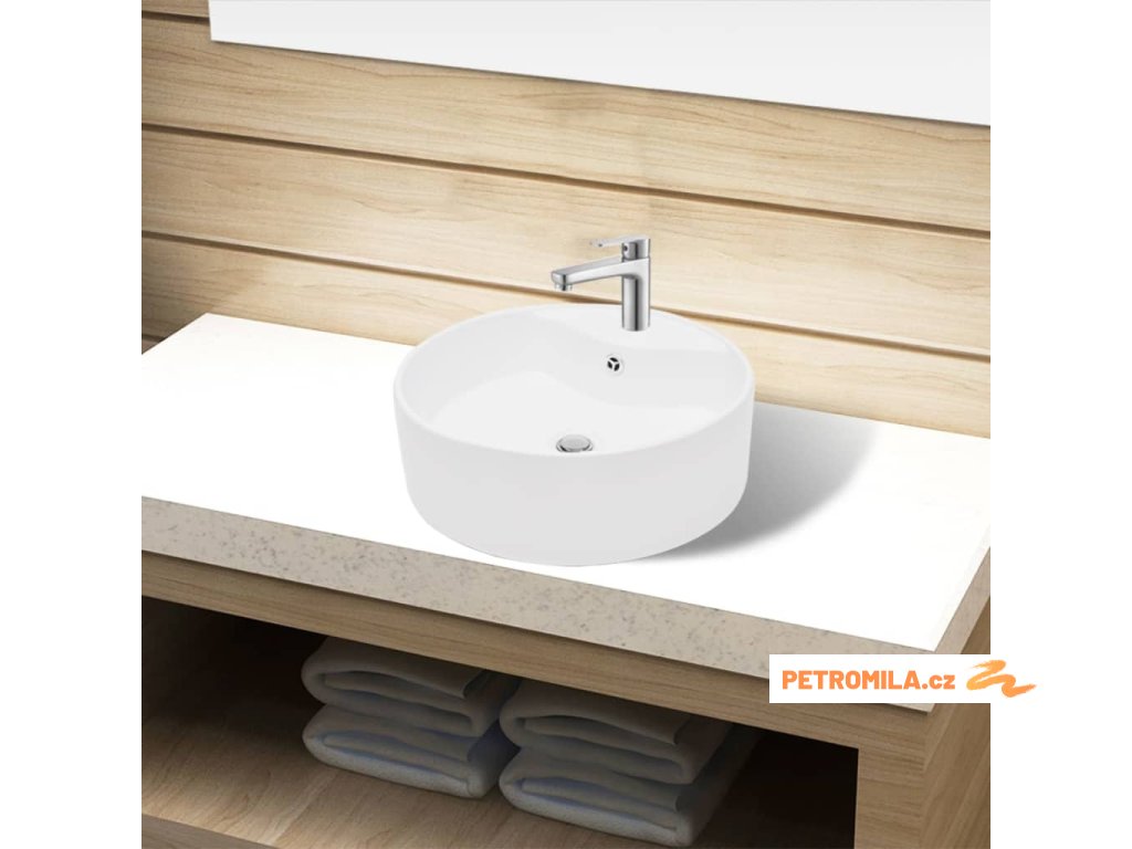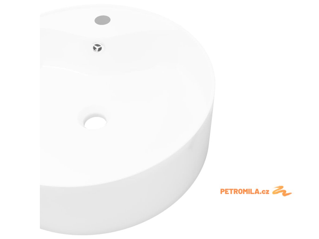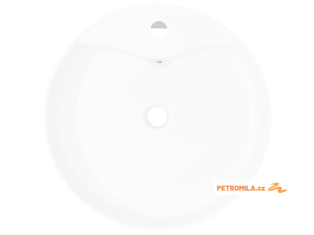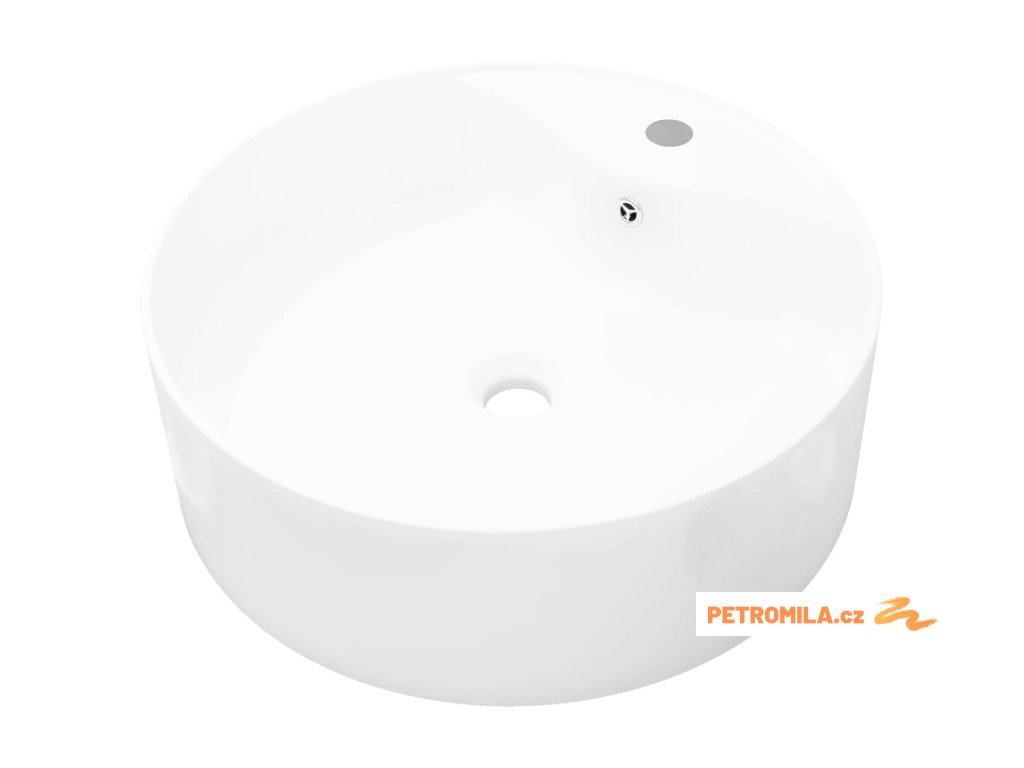 Koupelnové umyvadlo keramické kulaté bílé, otvor na baterií, přepad