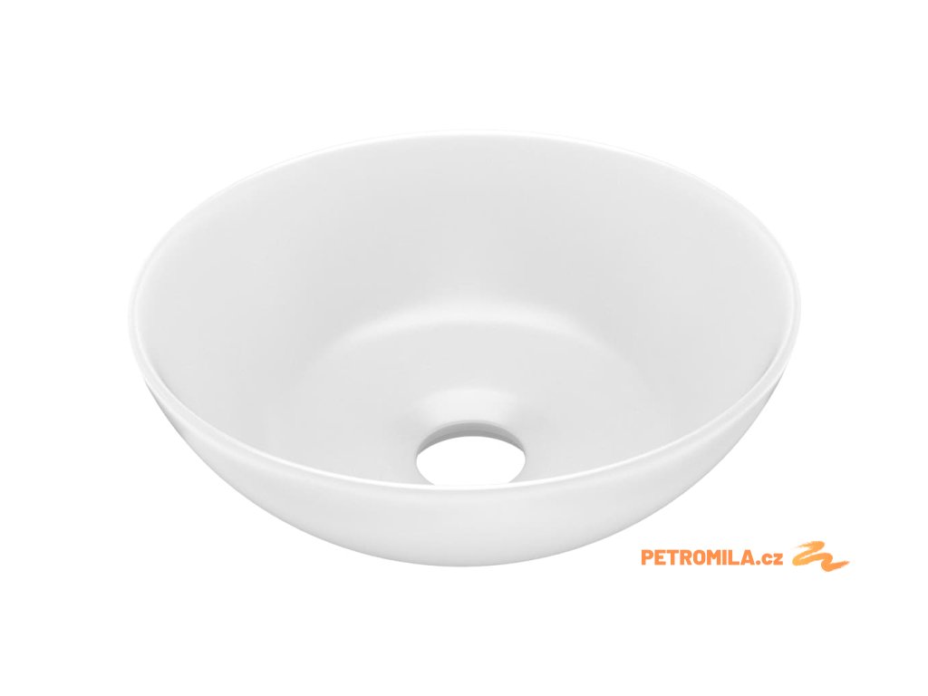 Kvalitní keramika s matným povrchem se snadno čistí. Jelikož umyvadlo nemá přepad a instaluje se na desku, působí velice čistým a elegantním dojmem. Uprostřed se nachází odtokový otvor o průměru 4,5 cm. Upozorňujeme, že kohoutek není součástí balení.