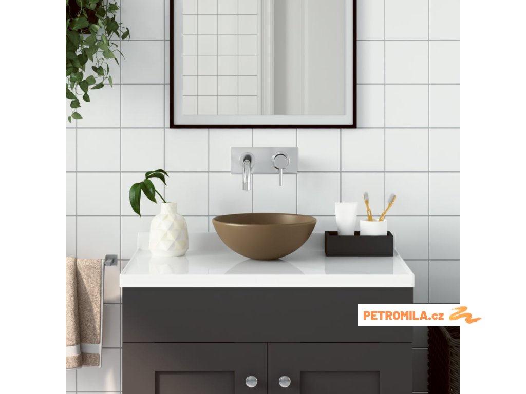 Koupelnové umyvadlo keramické matné krémové kulaté