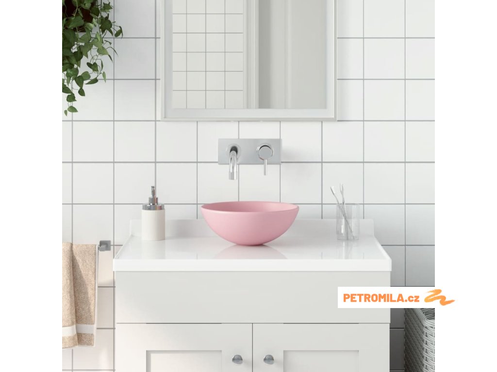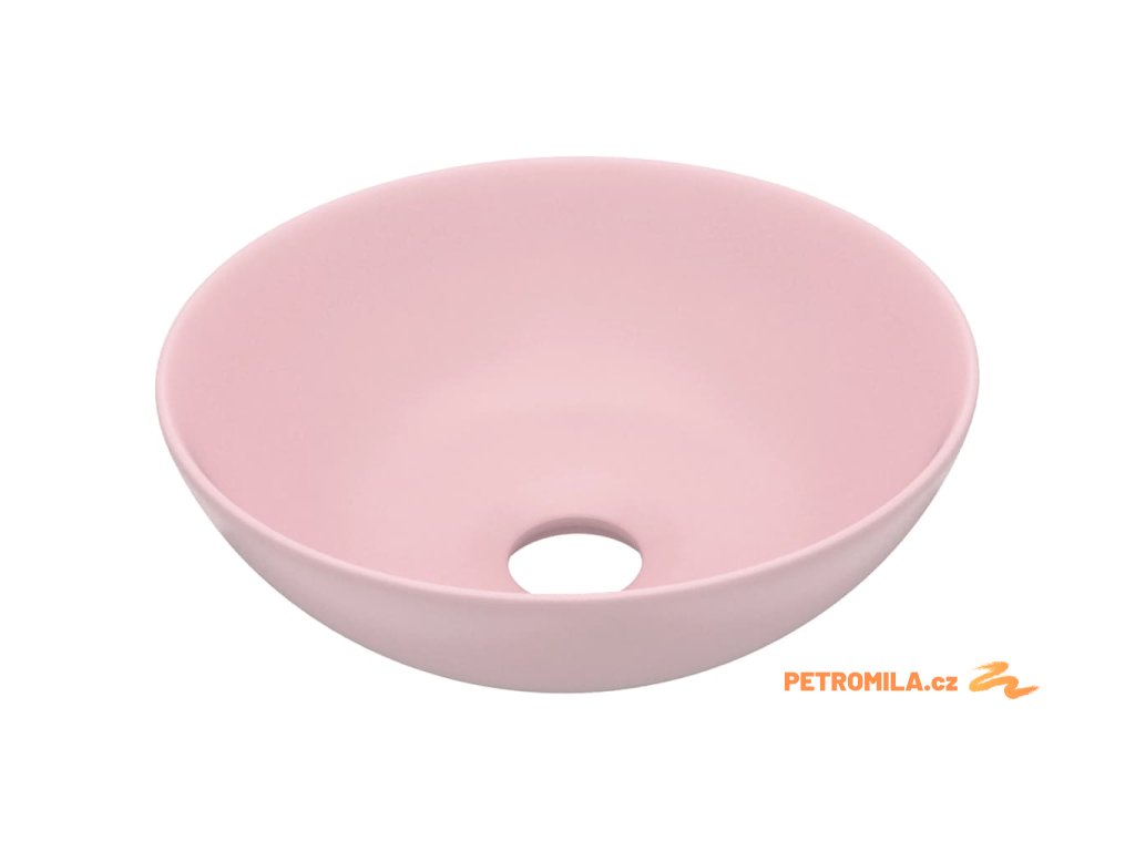 Koupelnové umyvadlo keramické matně růžové kulaté