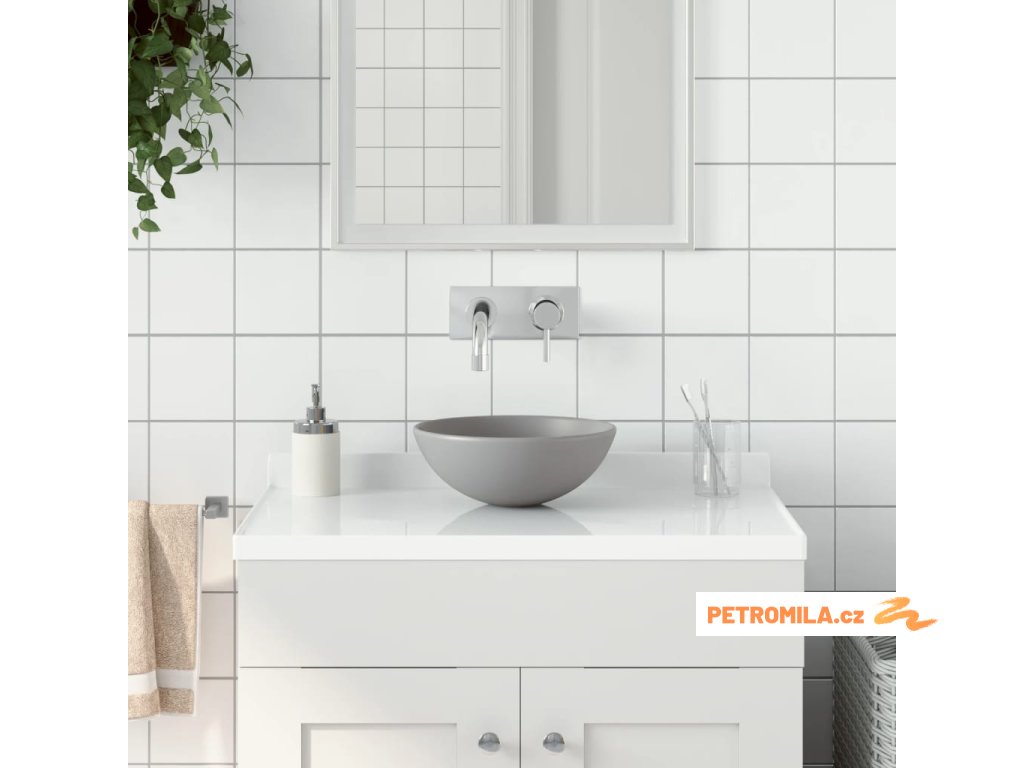 Koupelnové umyvadlo keramické světle šedé kulaté