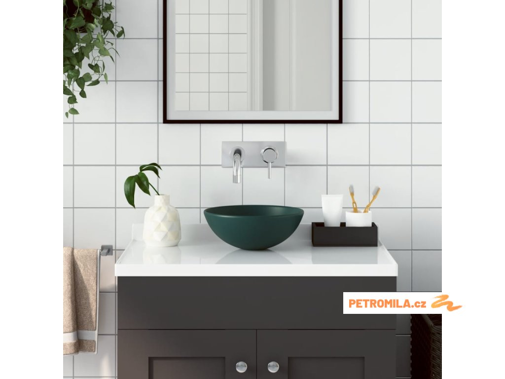 Koupelnové umyvadlo keramické tmavě zelené kulaté