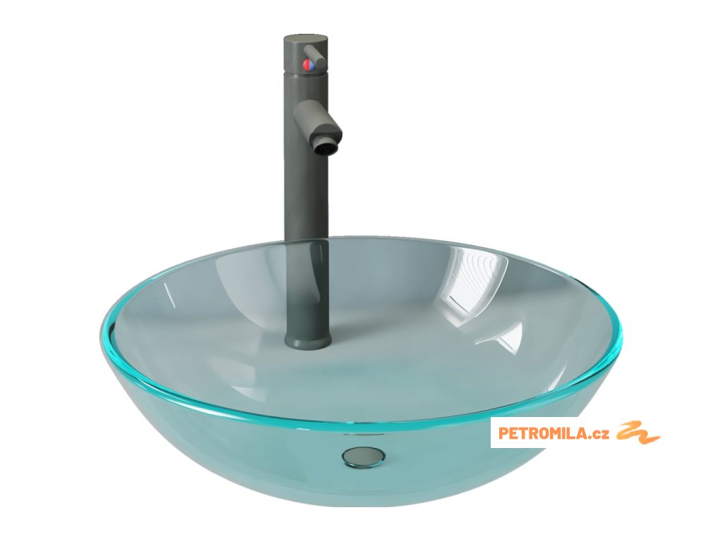 Koupelnové umyvadlo s baterií a výpustí průhledné tvrzené sklo