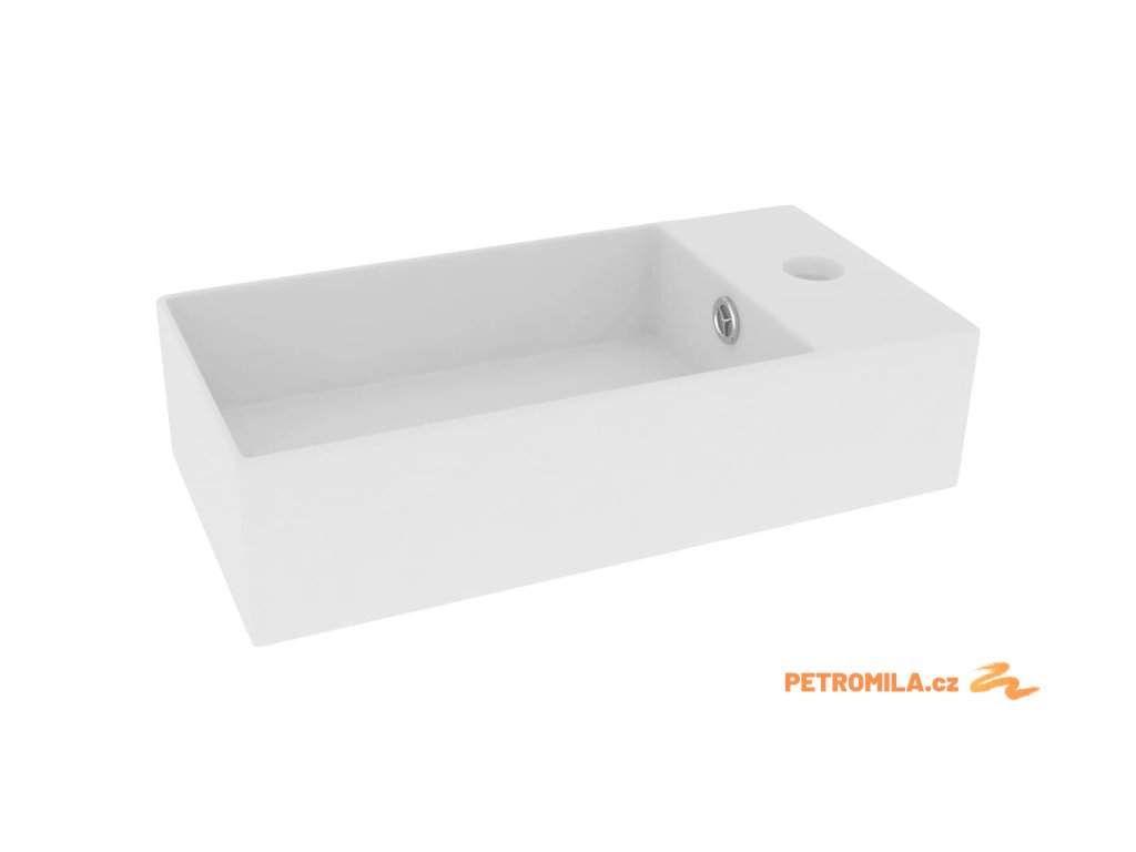 Kvalitní keramika s matným povrchem se snadno čistí. Přepadový otvor zajistí odtok vody, když je umyvadlo zaplněné. V umyvadle je též otvor pro instalaci vodovodní baterie. Odtokový otvor má průměr 4,5 cm. Je vhodný k instalaci na desku. Poznámka: Vodovodní baterie není součástí balení.