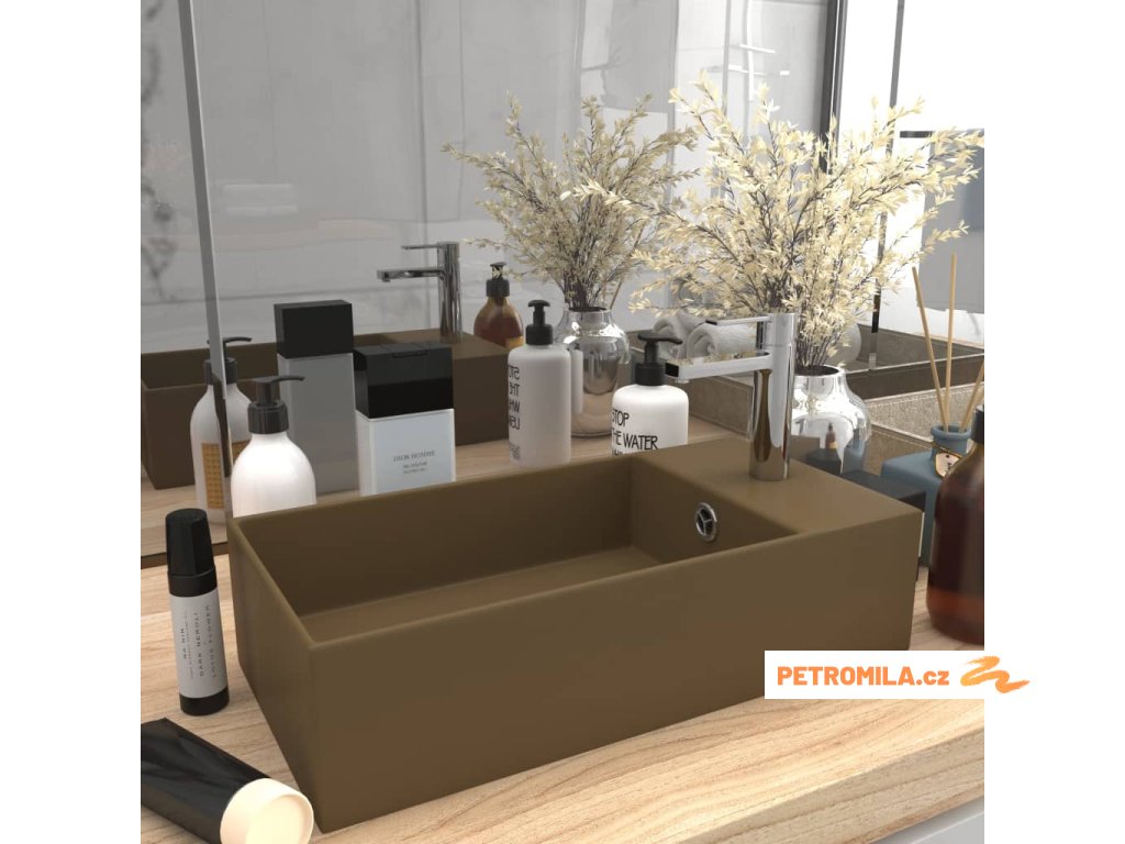 Koupelnové umyvadlo s přepadem keramické matné krémové