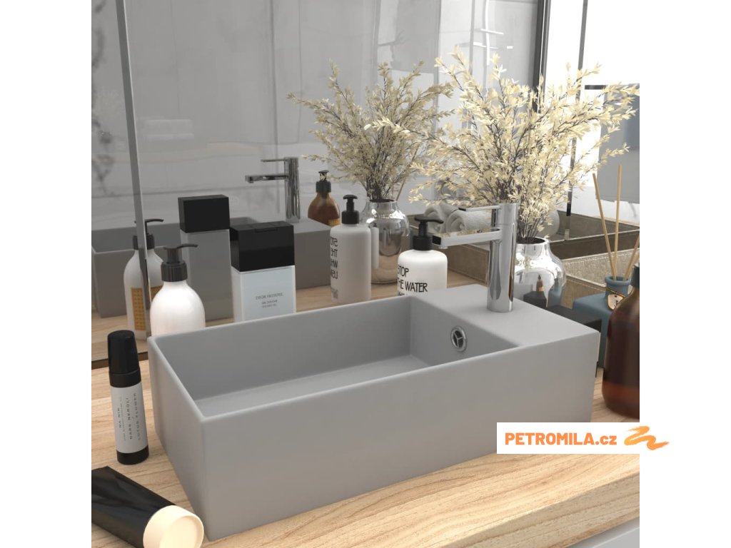 Koupelnové umyvadlo s přepadem keramické světle šedé