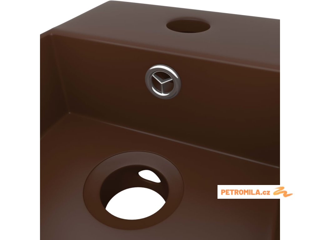 Koupelnové umyvadlo s přepadem keramické tmavě hnědé
