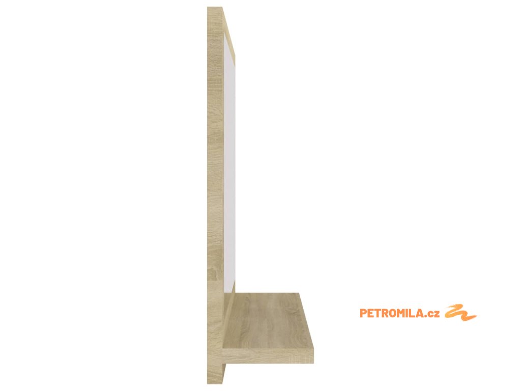 Nástěnné zrcadlo je vyrobené z kompozitního dřeva a akrylátu, vyniká proto svou odolností a stabilitou. Ve spodní části se nachází jedna malá polička, kam si můžete jednoduše naskládat různé hygienické a kosmetické potřeby, jako jsou mýdla, šampony, zubní pasty apod. Zrcadlo navíc snadno očistíte navlhčeným hadříkem.