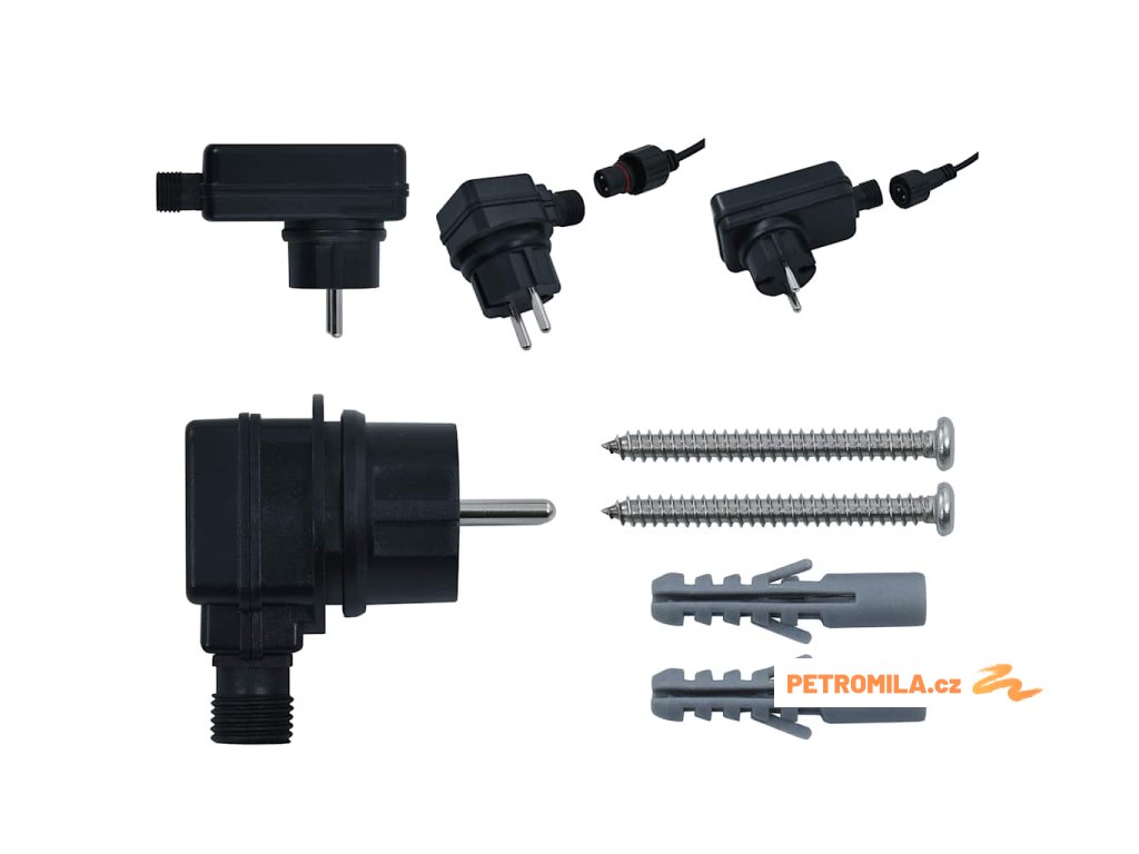Balení obsahuje 1 zrcadlo s LED světly, 1 adaptér a montážní příslušenství