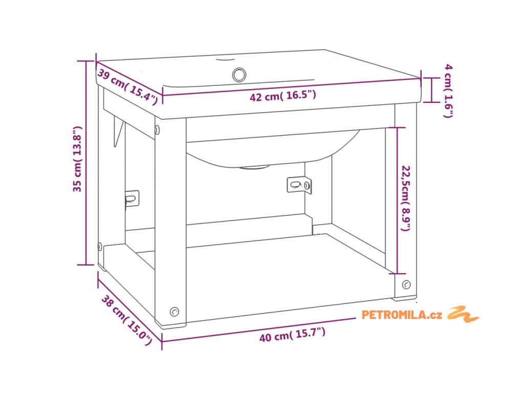 Stojan je vyroben z práškově lakovaného železa, takže je stabilní a odolný. Tento umyvadlový rám umožňuje snadný přístup k ručníkům a košíčkům a nabízí větší úložný prostor než uzavřené skříňky. Keramické umyvadlo je kromě praktického využití také ozdobou vašeho obytného prostoru. Se svým moderním designem se toto umyvadlo hodí do každého interiéru. Je vybavené přepadem pro odtékání vody a jeho glazovaný povrch přináší moderní a elegantní design. Rám i umyvadlo se navíc snadno čistí vlhkým hadříkem.