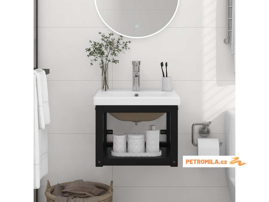 Koupelnový rám s vestavěným umyvadlem černý železo