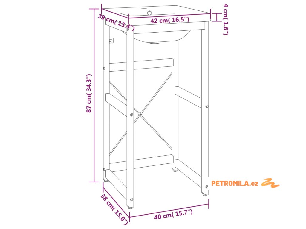 Stojan je vyroben z práškově lakovaného železa, takže je stabilní a odolný. Tento umyvadlový rám umožňuje snadný přístup k ručníkům a košíčkům a nabízí větší úložný prostor než uzavřené skříňky. Keramické umyvadlo je kromě praktického využití také ozdobou vašeho obytného prostoru. Se svým moderním designem se toto umyvadlo hodí do každého interiéru. Je vybavené přepadem pro odtékání vody a jeho glazovaný povrch přináší moderní a elegantní design. Rám i umyvadlo se navíc snadno čistí vlhkým hadříkem.