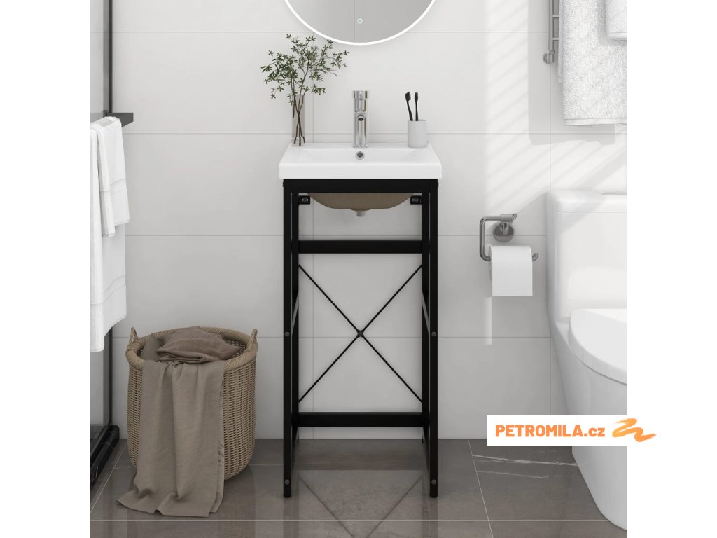 Koupelnový rám s vestavěným umyvadlem černý železo