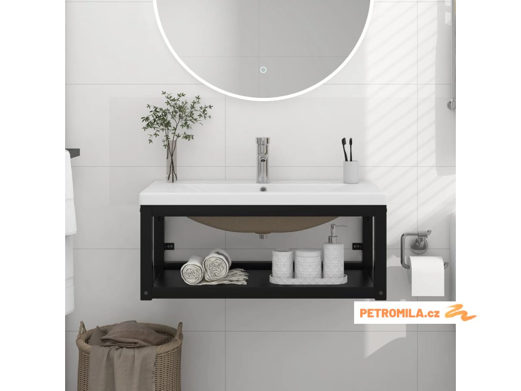 Koupelnový rám s vestavěným umyvadlem černý železo
