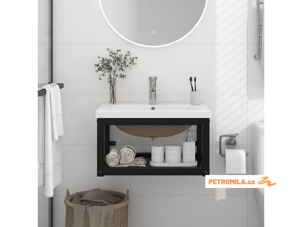 Koupelnový rám s vestavěným umyvadlem černý železo