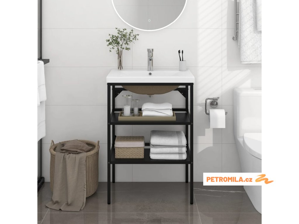 Koupelnový rám s vestavěným umyvadlem černý železo