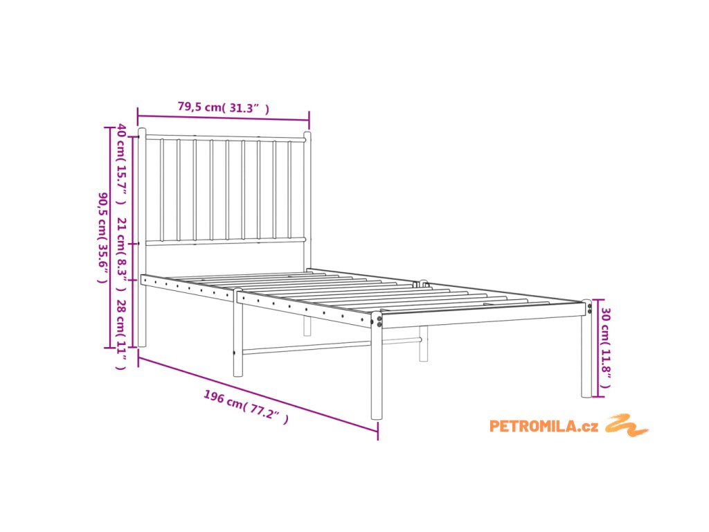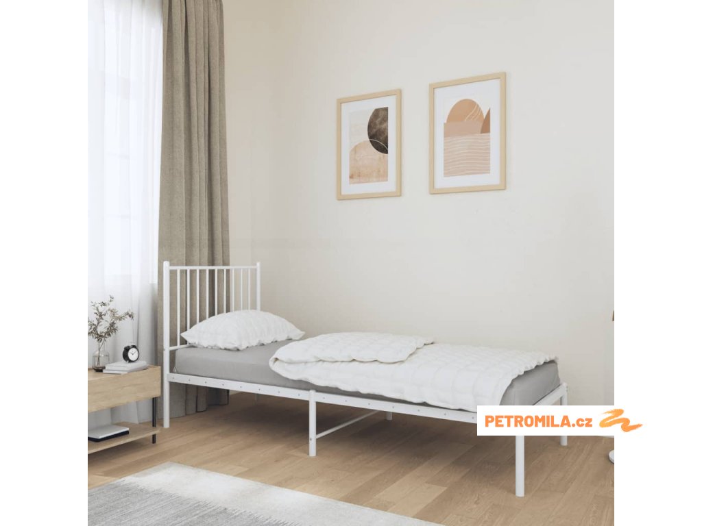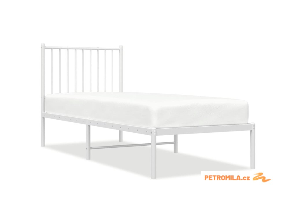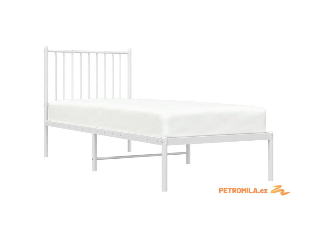 Kovový rám postele bez matrace s čelem bílý 75 x 190 cm