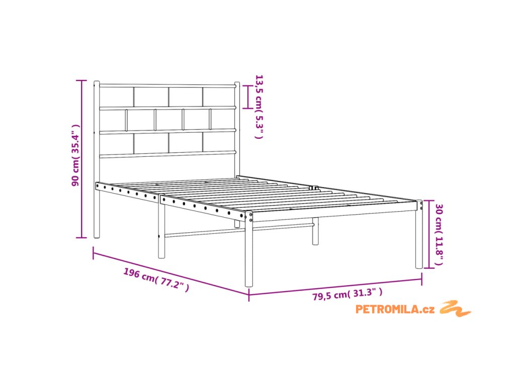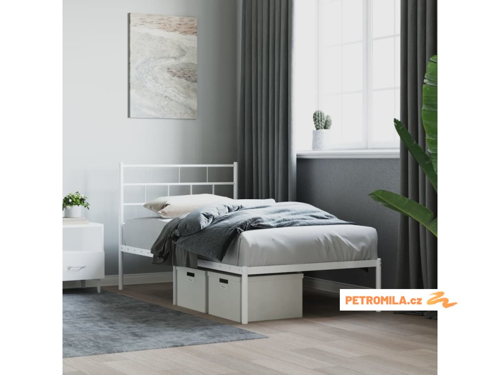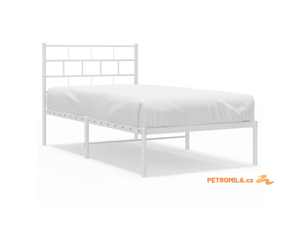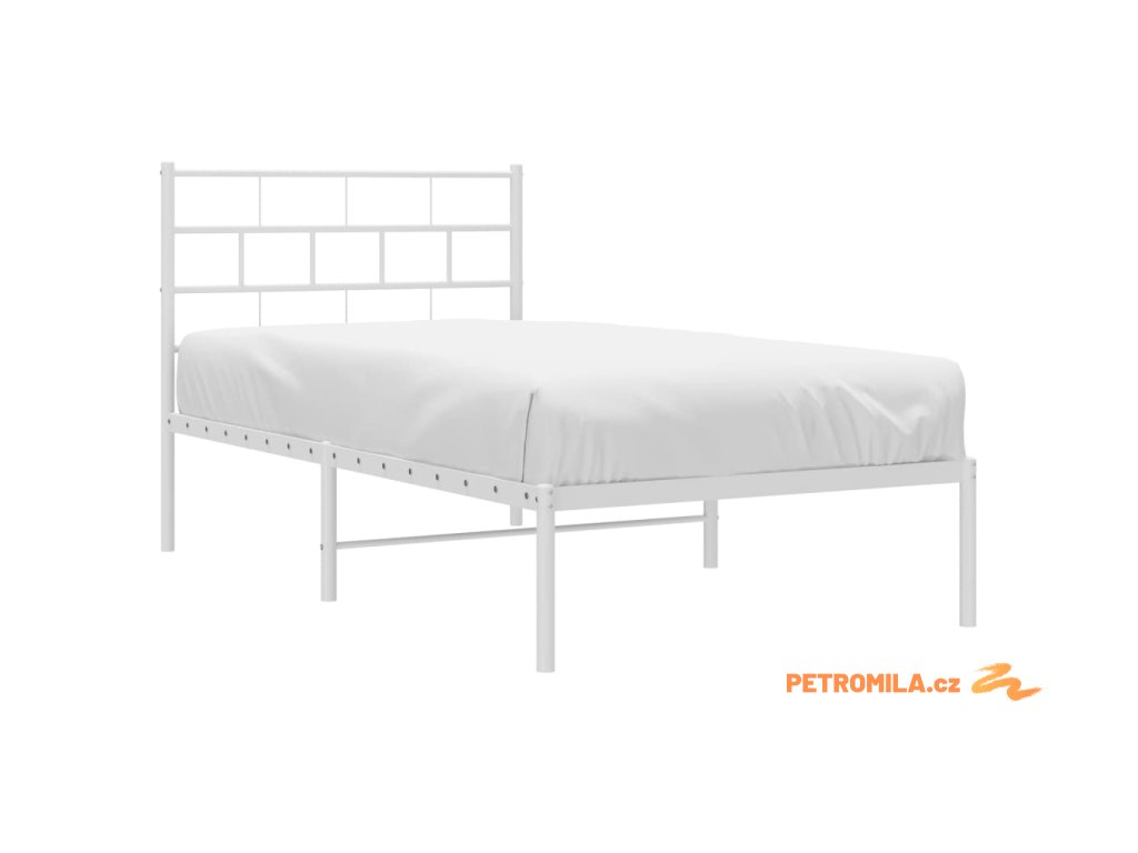 Kovový rám postele bez matrace s čelem bílý 75 x 190 cm
