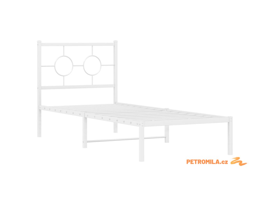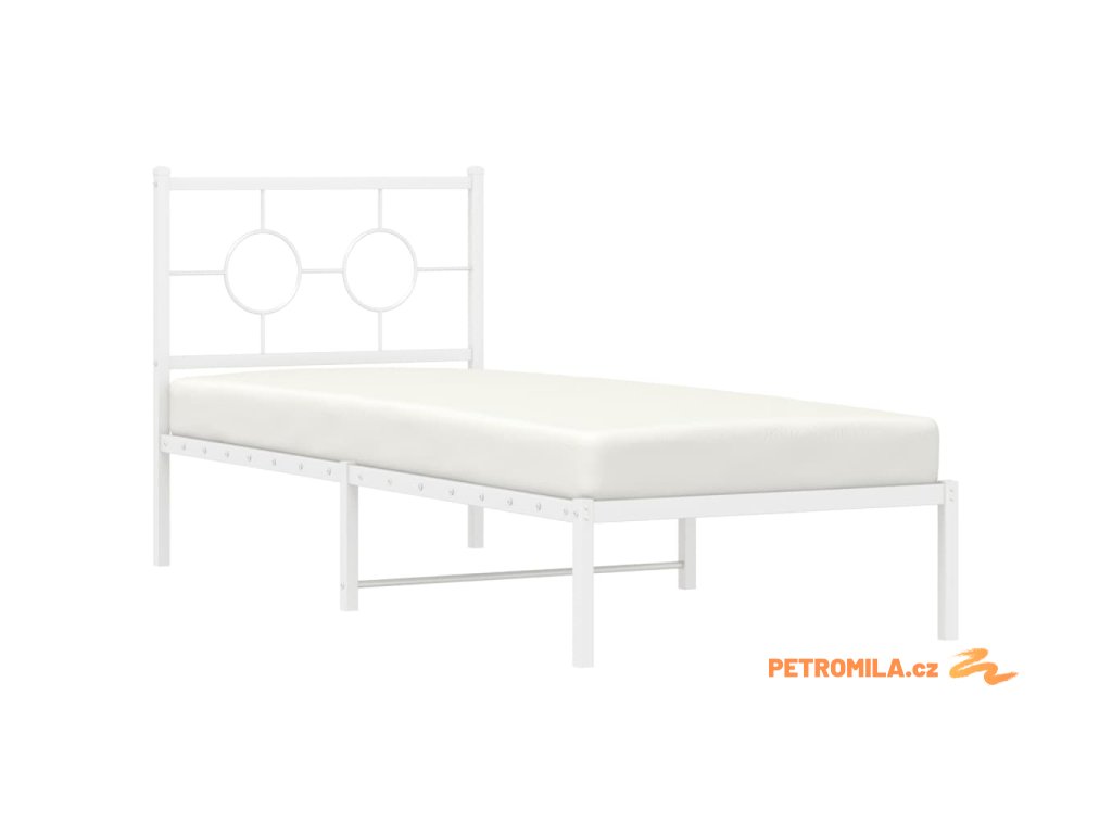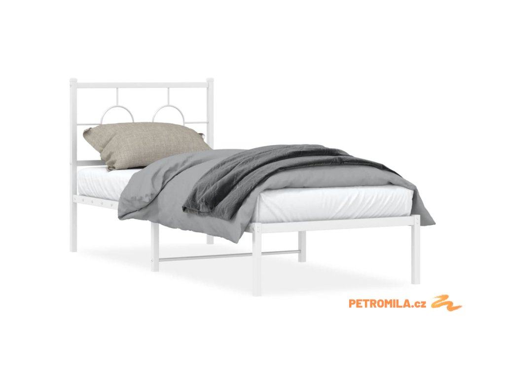 Kovový rám postele bez matrace s čelem bílý 75 x 190 cm